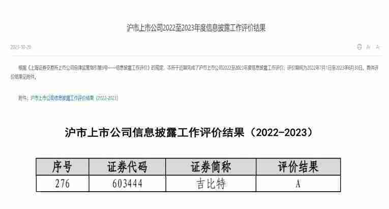 近日,,上海证券交易所发布2022-2023年度信息披露工作评价结果。。。1win(股票代码:::603444)凭借规范的公司治理、、、、高质量的信息披露以及良好的投资者关系管理再次荣获信息披露工作A级评价,,公司连续两年获此殊荣。。。